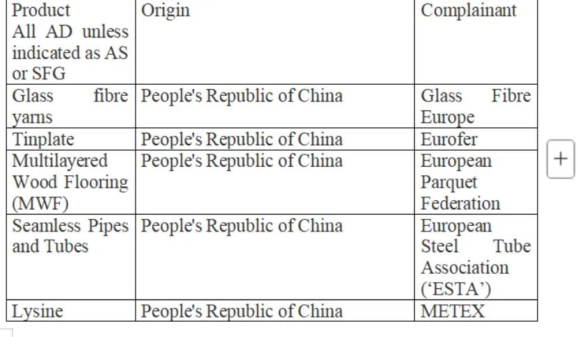 ·建材及家居:玻璃纖維紗線、多層實木地板、裝飾紙、硬木膠合板;以及農產品及食品:甜玉米、賴氨酸、纈氨酸,特點是涉及食品添加劑(氨基酸)和加工農產品,折射歐盟農業保護政策較嚴格;此外還有其他工業品:蠟燭、無頭螺釘、移動式升降設備(反補貼),涵蓋輕工業品和機械設備,一定程度反映歐盟對勞動密集型產品的限制。