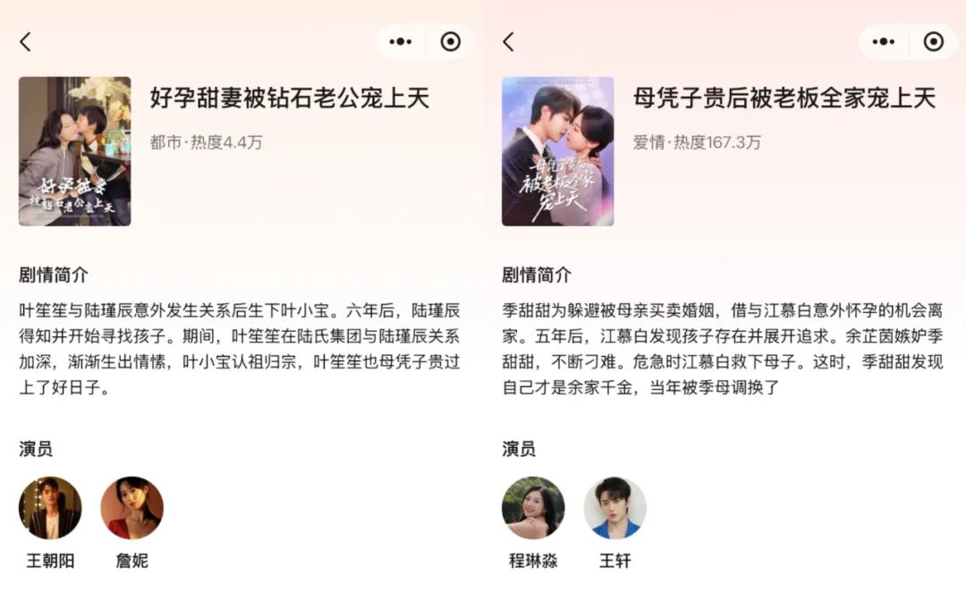其中,超級爆款《好孕甜妻》表現突出,流水突破8000萬元,高居年度霸屏榜第二位,全網播放量更是超過30億大關;另一部劇《母憑子貴後被老闆全家寵上天》也表現不俗,播出期間奪得周榜冠軍,上線首月播放量即突破10億。