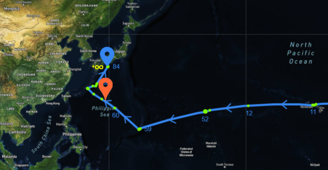 從美國媒體畫出來的示意圖來看,Lightfish無人艇從聖迭戈出發,走中太平洋路線西進,中間似乎路過了珍珠港,到達關島附近海面的時候,似乎已經開了50多天。