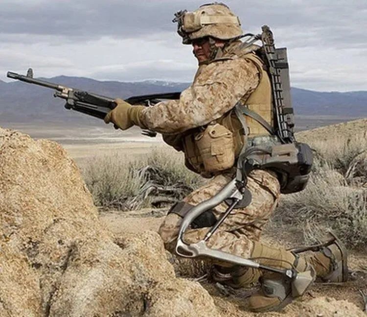 ▲當年美國率先提出的外骨骼概念,至今未見蹤影。早年宣傳圖中,也是一名美軍機槍手,身穿外骨骼,揹着彈藥箱,堪稱機甲戰士。