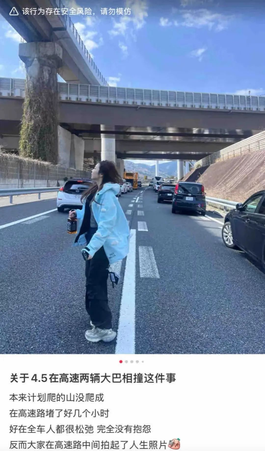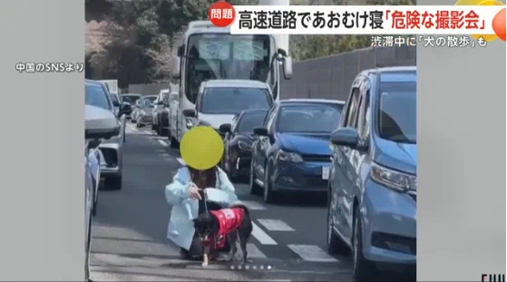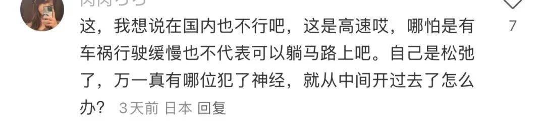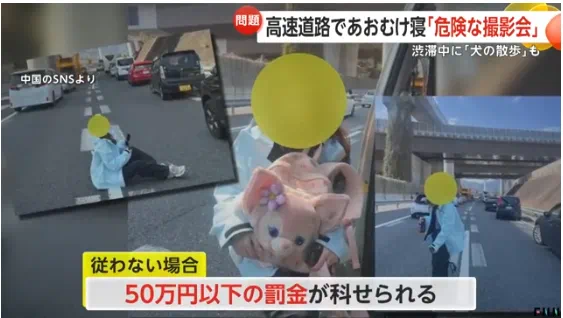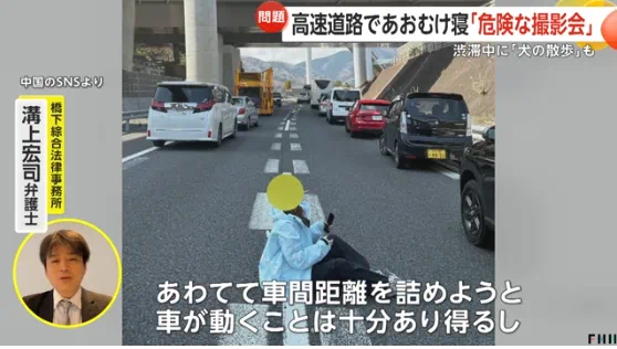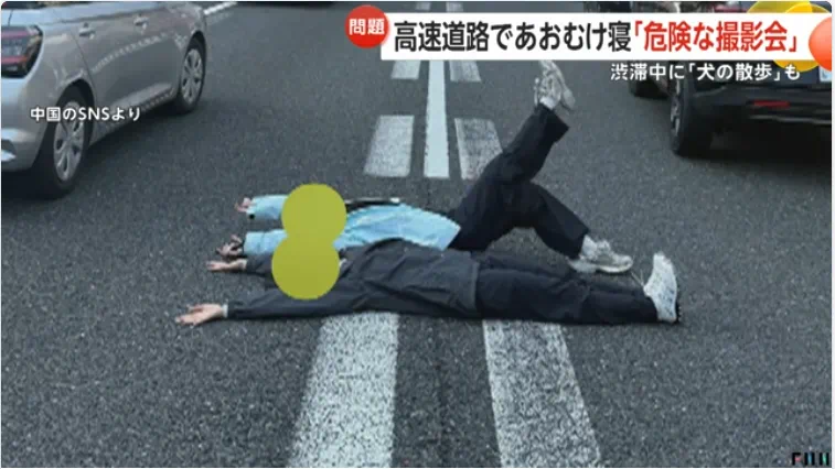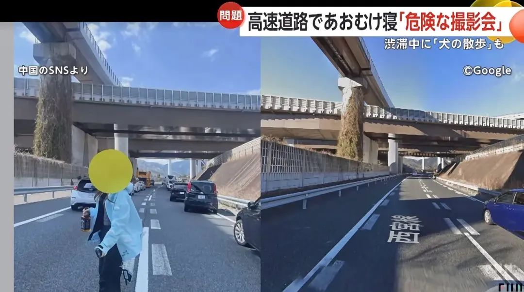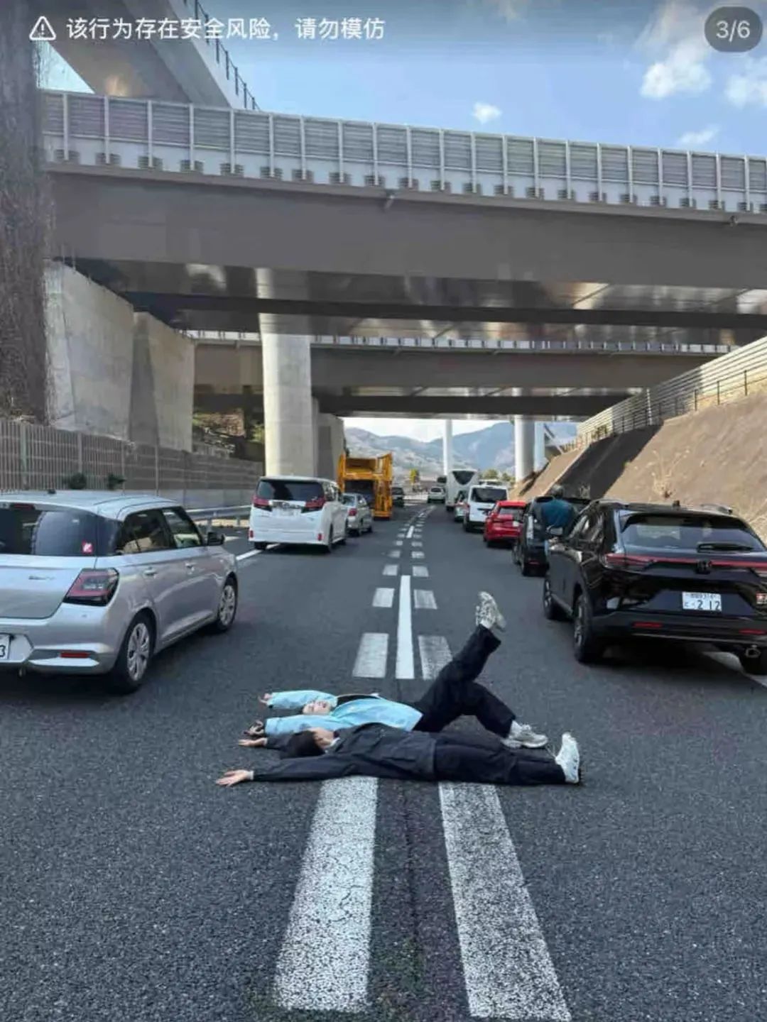 還有今年4月份的時候,出了一個躺在日本高速公路上打卡出片的“國人先驅”,引發日推上600萬人圍觀,還上了日媒報道……