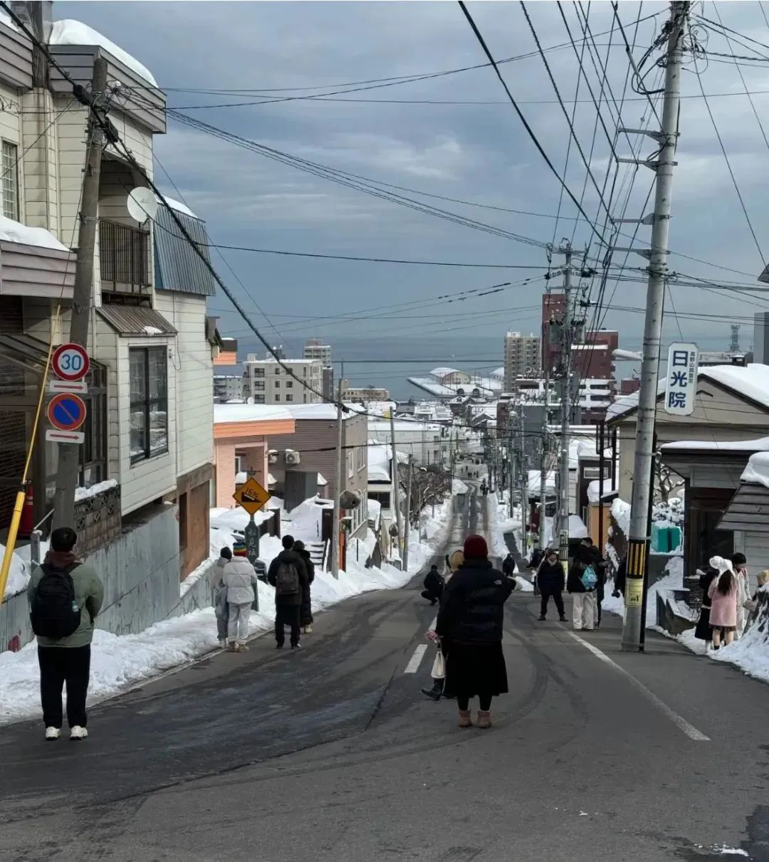 小樽還有那個船見坂,一條超長的上坡路,也是電影《情書》的取景地之一,之前也是好多遊客都隨意在那條坡上拍照🤳,都不注意車輛的。