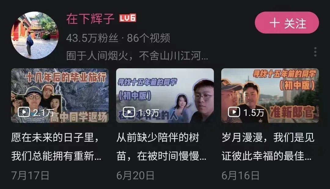 面對這些客觀限制,中腰部創作者不得不採取差異化策略,揚長避短地尋找生存空間。他們通常選擇用第一視角的生活體驗或者觀察,來彌補專業層面的不足,以及有效減少製作成本壓力。比如,“在下輝子”探訪自己高中同學、初中同學、北漂朋友等,鏡頭關注的是一羣人不同人生岔路下的選擇;“遲早是我”則是從體驗職業層面出發,去還原職業背後的規則,以及工作背後的人情冷暖。
