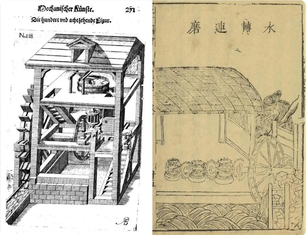 中國的水利技術、建築技術等也在西方得到應用。《農政全書》中記載的水轉大紡車利用水力驅動機械運轉的原理,被英國工程師瓦特參考,他在 1776 年改進蒸汽機時,借鑑了水轉裝置的曲柄連桿結構,解決了蒸汽活塞的直線運動轉化為圓周運動的關鍵問題,英國科學博物館保存的瓦特手稿(MS 309/4)中,有 3 處繪製了中國水轉紡車的示意圖,並標註 “此法可改良蒸汽動力”。這些技術推動了西方基礎設施的建設,為工業生產的規模化發展創造了條件。
