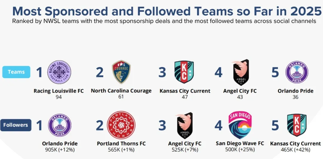 值得一提的是,儘管NWSL比賽場次少於WNBA,但球隊單場贊助收入仍高於WNBA,平均每筆贊助協議金額約為2.7萬美元,高出約18%。這一成績在聯盟成立時間還不到WNBA一半的情況下尤為亮眼。