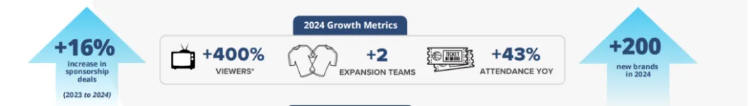 觀眾方面,聯賽呈現出全方位增長態勢。2024賽季,現場觀賽人數同比增長43%,電視觀眾數量激增400%。這一觀賽熱潮直接推動了聯賽規模的擴大,為贊助商提供了更廣泛的曝光渠道。