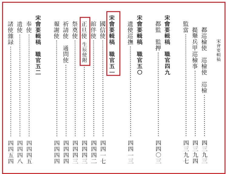 然後我又查詢《宋會要輯稿》,你別説,這本書裏面《職官》條目的五十一,真的就是跟我提問相關的內容“正旦使”。但是不出所料的是,這裏面既沒有所謂的“三六”,也沒有宋高宗要求金國使團“毋過百人”的記載。