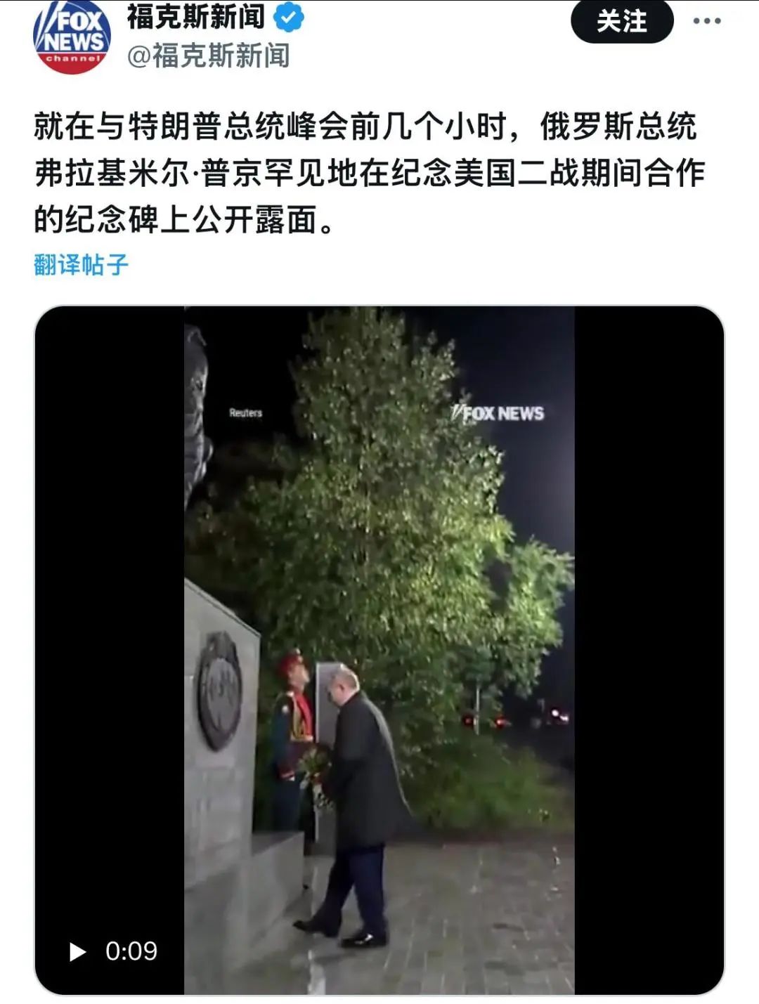 普京還在峯會開始前,特意去了俄羅斯那邊的,紀念美蘇合作的英雄紀念碑,進行一個獻花動作
