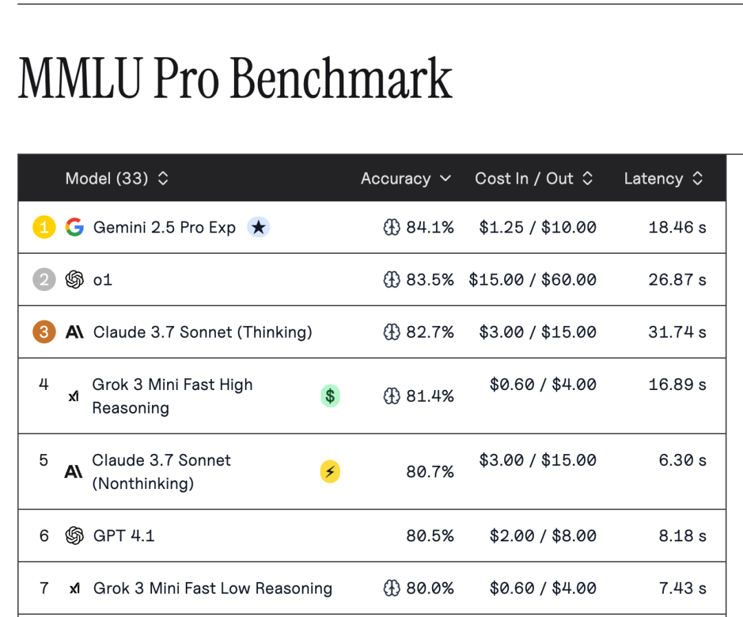 除了 AI 競技場這種主觀排行榜,大模型還有 MMLU Pro和 AIME 這類客觀基準測試。