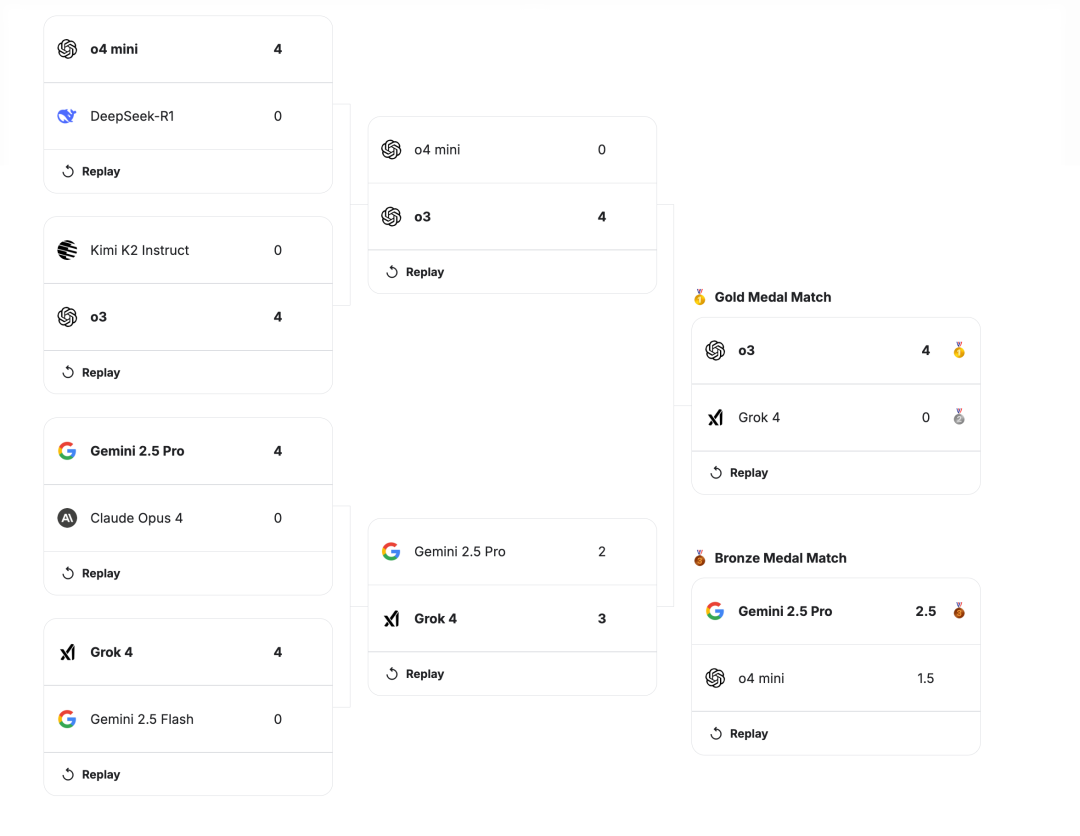 而 GPT-o3,則以一把沒輸的絕對統治力,奪得冠軍。