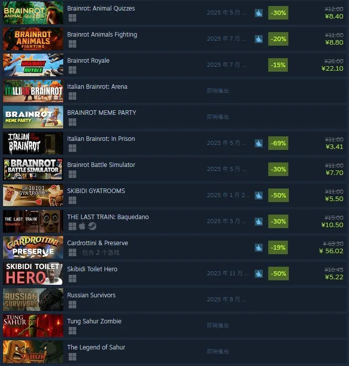 把“腦腐”這個詞輸入到Steam裏,則立馬能蹦出幾十個遊戲。