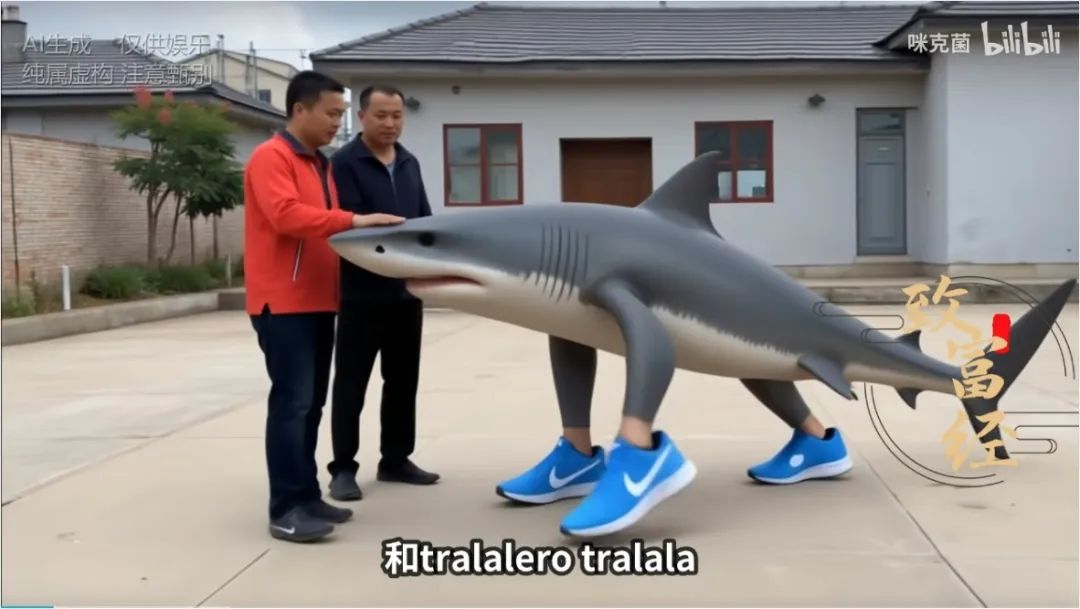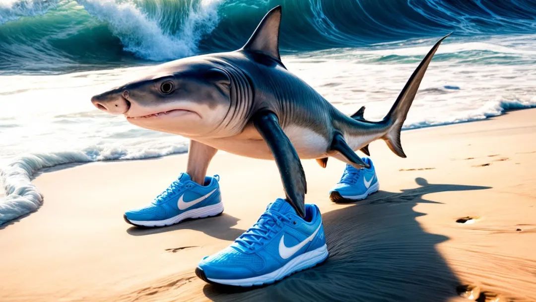直到第一個AI山海經形象誕生也依然如此。2025年1月,一條穿着三隻耐克鞋的鯊魚圖片作為第一隻“神獸”出現時,緊跟着這個形象的就是一大段涉及到宗教侮辱的意大利語髒話輸出。