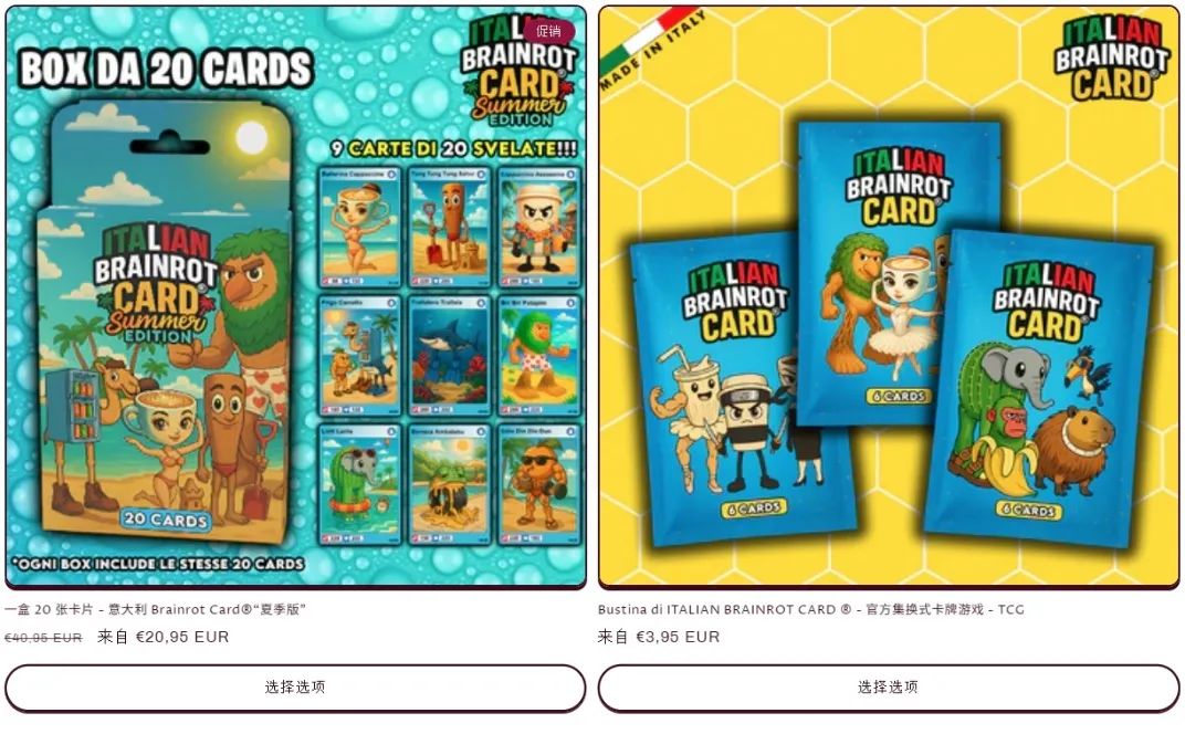 事實上隨着AI山海經的火爆,看到其商業化潛力的人並不少。相關產品早就從線上的段子蔓延到了線下的商品裏,不僅早早有了吧唧、表情包、玩偶的整條穀子產業鏈,甚至連TCG卡牌品牌都已經誕生,慢一拍的國內商超裏也已經能看到相關玩具。