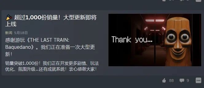 只看數據的話,《末班列車》在Steam上收穫了89%的好評率和幾千份的銷量——這聽起來沒什麼了不起的,在Steam上甚至算不上掀起浪花,但實際上,它已經是Steam上最成功的腦腐主題遊戲之一。