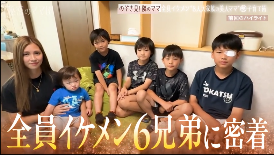 這其中就有一家住在千葉縣的大家庭,因為媽媽紋子的美貌和幾個娃逆天的顏值而連續9期上了綜藝跟拍。