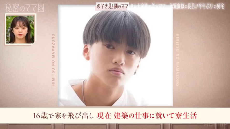如今,長子似乎重走了母親紋子的老路,16歲高中退學,已經進入了社會,如今一個人住進了建築公司的職工宿舍中。在節目組的安排下,他也回了家。