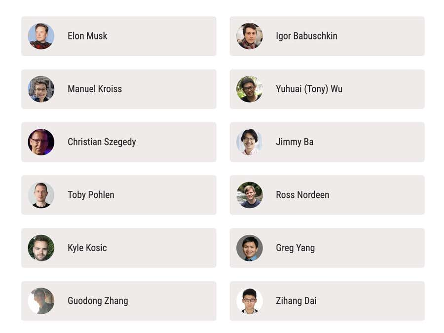 例如xAI在2023年成立時,公佈了包含11人的“創始團隊”,華人有4人,其中就有一位Zihang Dai是清華校友。