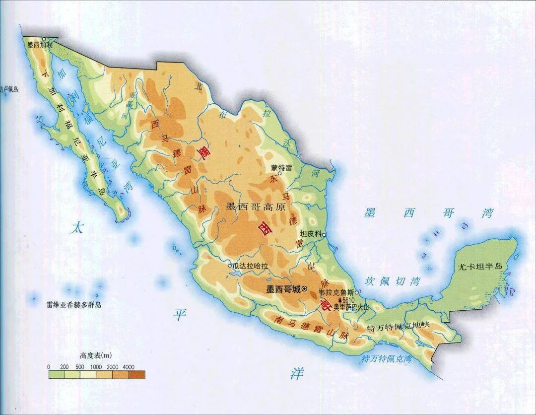 墨西哥70%的人口居住在內陸高原上,沿海地區人口不多。