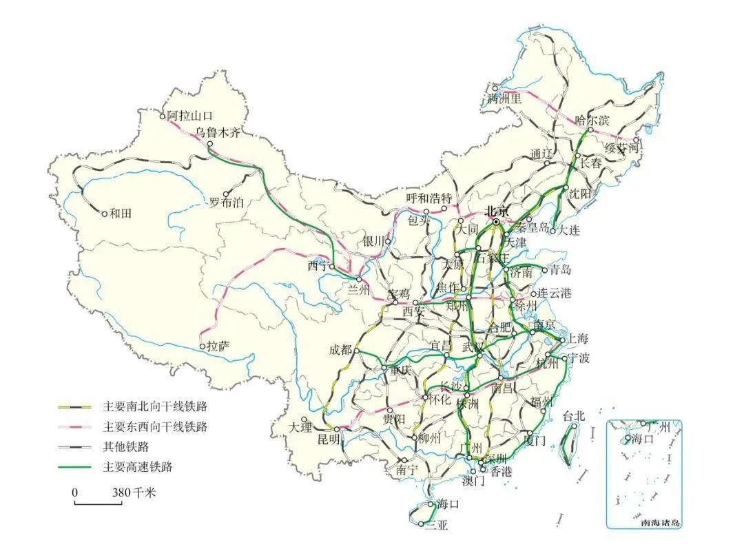 我國的鐵路也已完全覆蓋人口密集的東部地區,尤其沿海地區。
