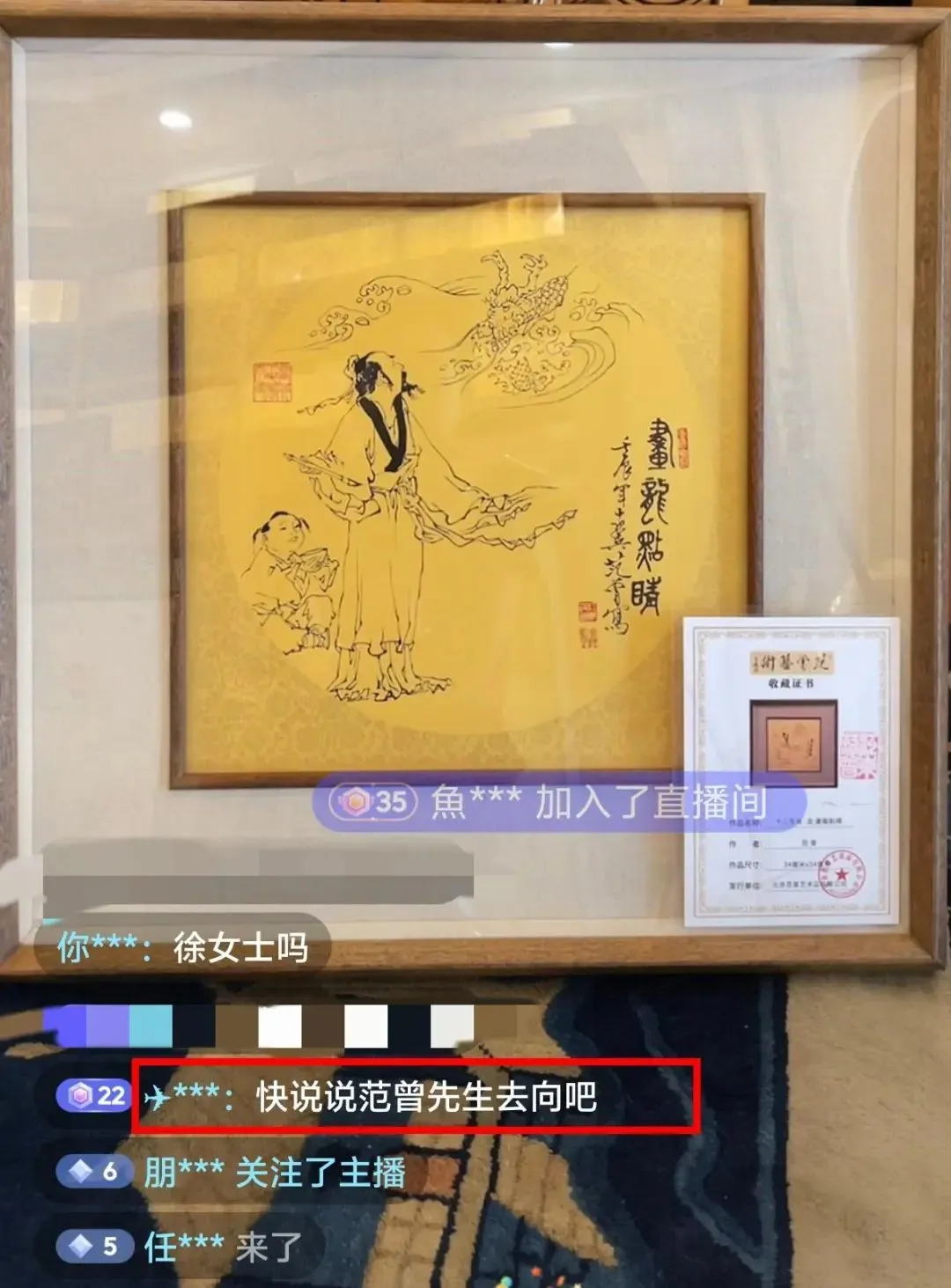 據天眼查APP信息,範曾是北京範曾藝術品有限公司股東之一,持股1%。17日上午,“範曾藝術品有限公司”員工賬號在直播售賣範曾的作品。17日中午,記者觀看了近半小時的直播,不少網友湧入直播間,詢問範曾的下落,主播未作出回應。“不讓播了,下播了。”主播在下播前表示,感謝大家對範曾先生的關注,明天再播。