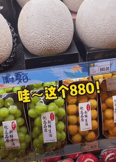 網友曬出了很多令人咋舌的水果消費記錄:88元一個的芒果、128元一個的蜜瓜、61元一斤的葡萄……這些數字像針一樣扎得普通人的錢包直抽抽。早就有網友就自嘲地表示:“現在買水果要先深吸一口氣,做好心理建設才能掃碼付款。”