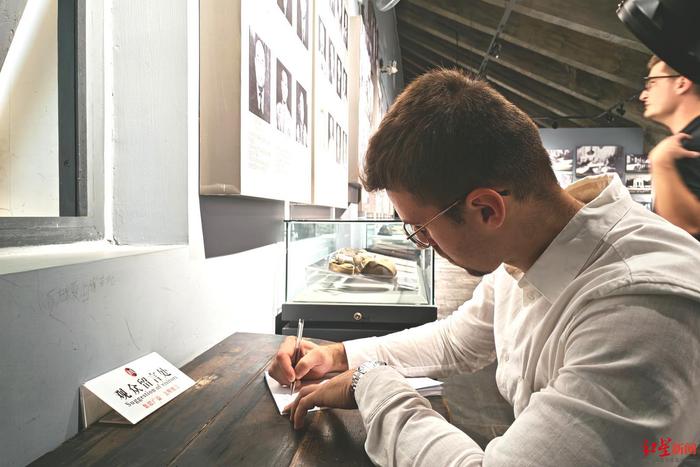 近日,馬庫斯和好友士傑、鍾灝松一行抵達成都,馬不停蹄地趕往建川博物館參觀。在博物館的留言簿上,馬庫斯用中文寫下“我們從來不忘記,我們從來不會忘記”的留言。