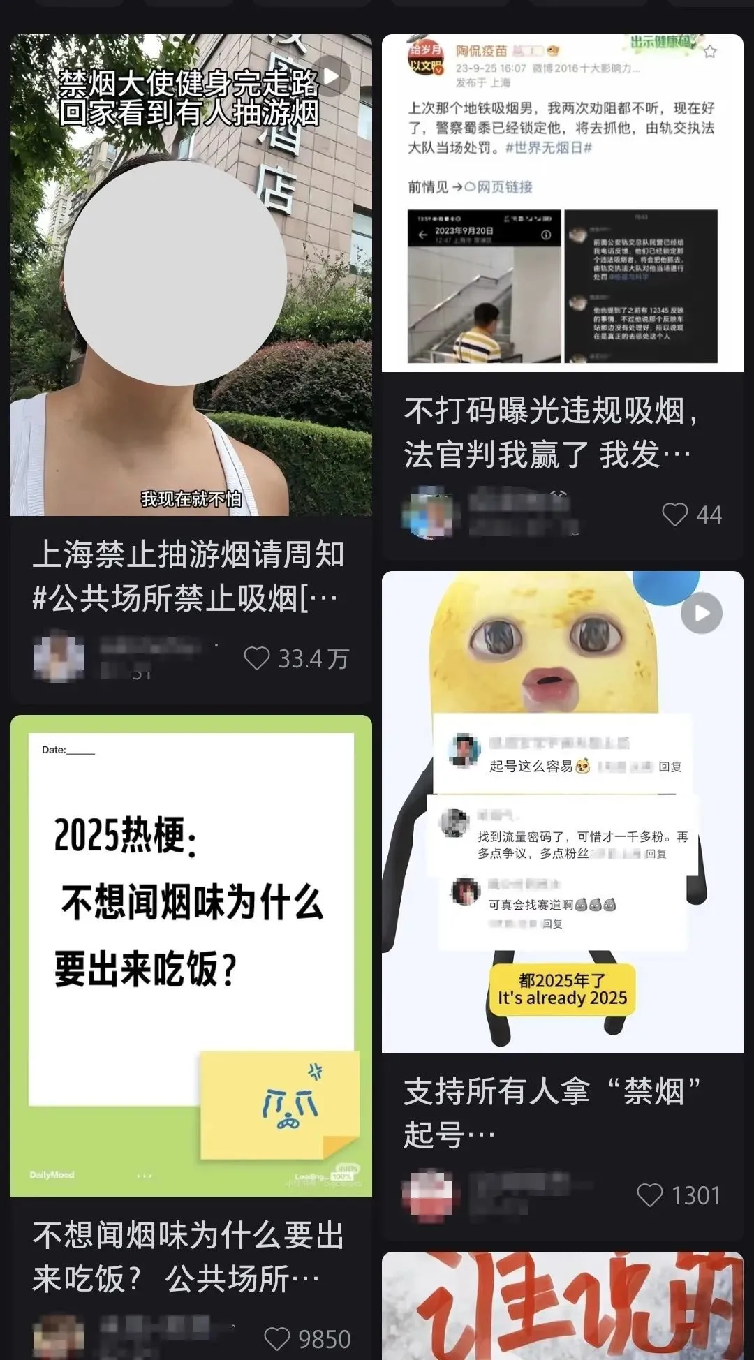 外籍人士因勸阻室內吸煙被打後,社交媒體上湧現了許多禁煙博主,以及許多“苦二手煙久矣”的聲音。