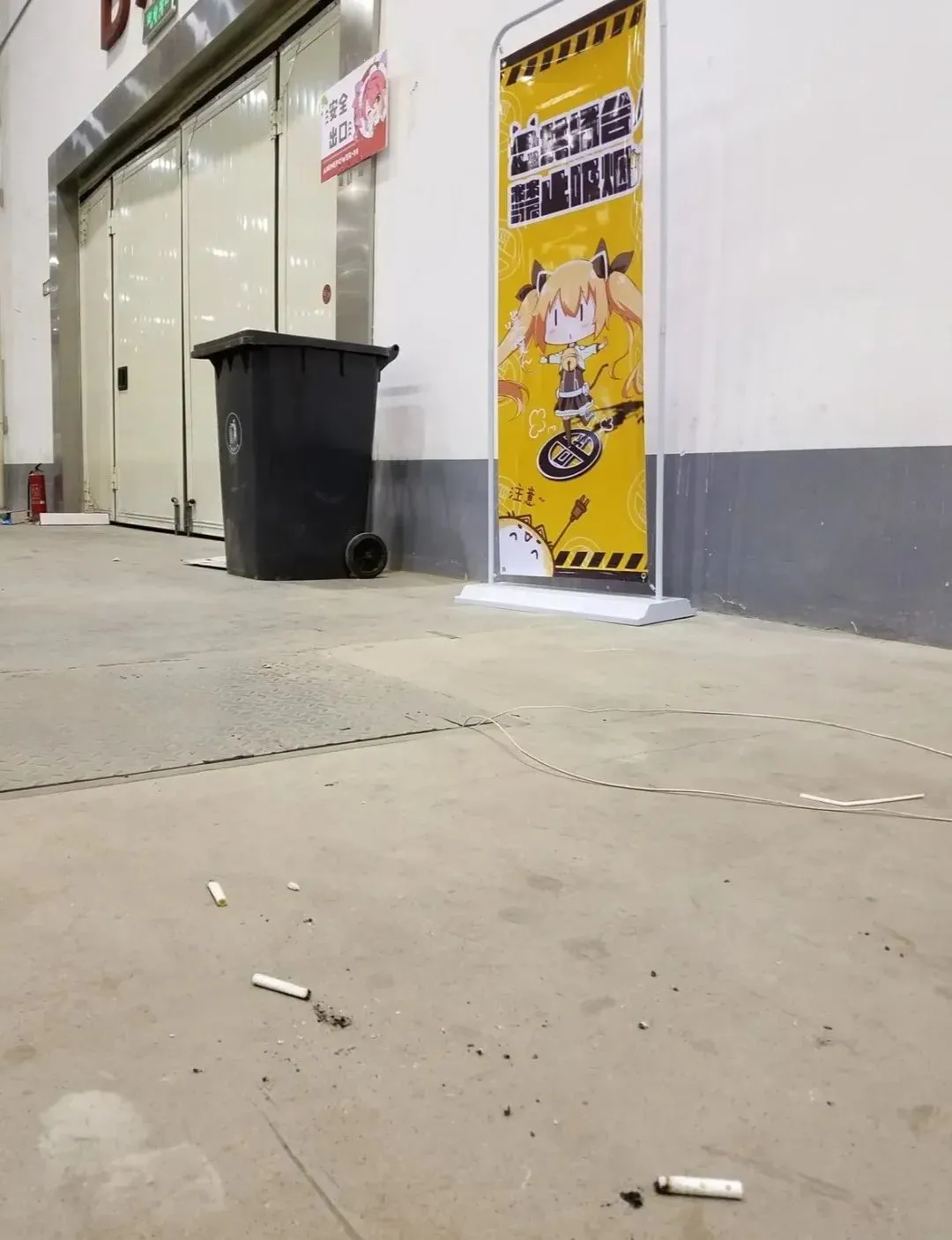 他試過和商場物業進行交涉,多次反映有人在樓道抽煙。光是武漢的市民投訴熱線,他就打過三四十次。蘇崎表示,剛開始投訴比較頻繁的時候,商場確實“認真對待”了一些:相關部門上門調查,商場配合對方,貼上了“禁止抽煙”的標誌,撤走了垃圾桶上方的煙灰缸,遇上週末人多的時候,偶爾還會安排人巡邏。