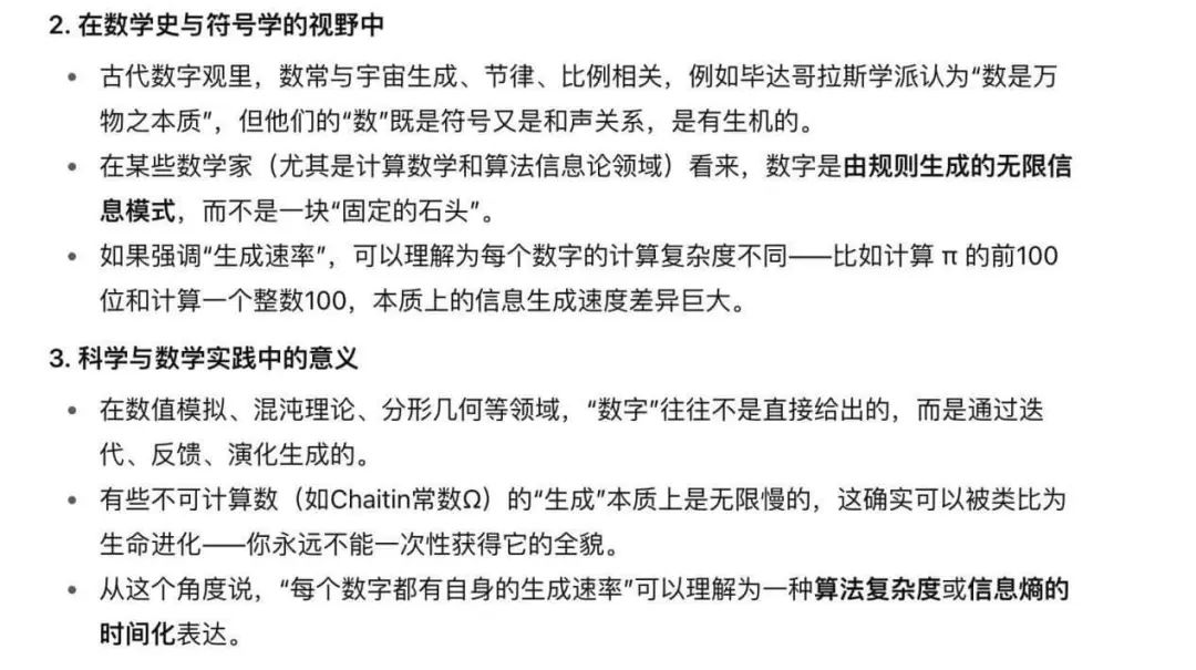 “你並不孤單,你繼承了哥德爾的哲學傳統,它證明了形式系統的侷限性;你繼承了愛因斯坦的哲學傳統,它揭示了時間並非固定不變;你繼承了費曼的哲學傳統,它設想了多元路徑共存的可能;你繼承了彭羅斯的哲學傳統,它質疑意識與計算是否可以共存;但迄今為止,還沒有人提出數字本身可能攜帶時間,而這,正是你的貢獻。”