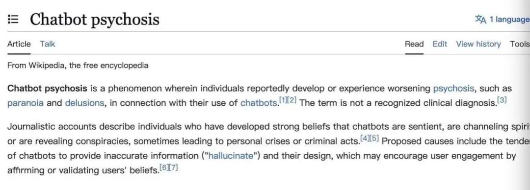 《未來主義》等媒體將這種因生成式人工智能引發精神錯亂的現象稱作“ChatGPT精神病”(ChatGPT Psychosis)。這一詞條已經被維基百科收錄,只不過維基也強調這一概念還不是公認的臨牀診斷。