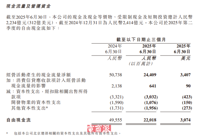 巨大的支出也對集團的現金流造成影響,京東二季度自由現金流為220億元,相比去年同期的496億元大幅下滑55%。