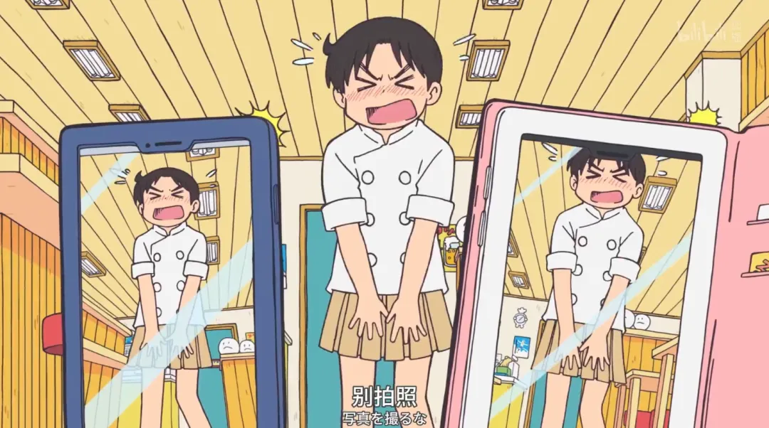 比如動畫第一集南雲打工的飯店,飯店老闆的一對兒女“真壁立湧”“真壁祭”對着一週的星座指南説起。哥哥假裝唯物主義不信這個,後來又暗搓搓地詢問,最後狠下心穿上“短裙”,擁抱幸福人生。