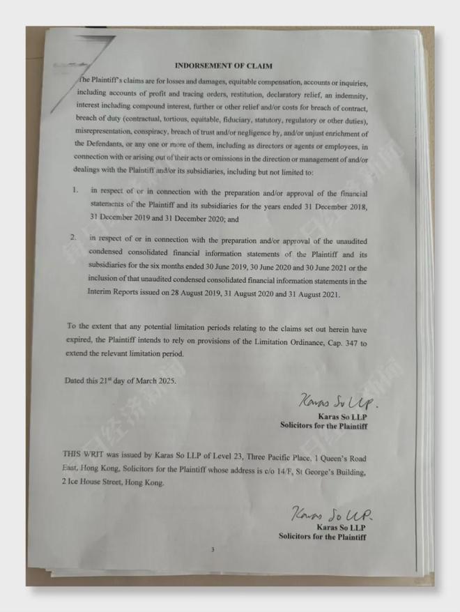 2024年1月,中國恒大被香港高等法院正式頒佈清盤令,法院委任的清盤人開始為境外債權人索償。此後,恒大清盤人向許家印、許家印前妻丁玉梅、夏海鈞等七名被告提起訴訟,追討他們在2017年至2020年四個財年所獲取的股息及酬金,合計約60億美元(約430億元人民幣)。同時,清盤人還申請到多項禁制令,限制這七名被告處置、出售或削減名下全球600億港元(約550億元人民幣)資產。