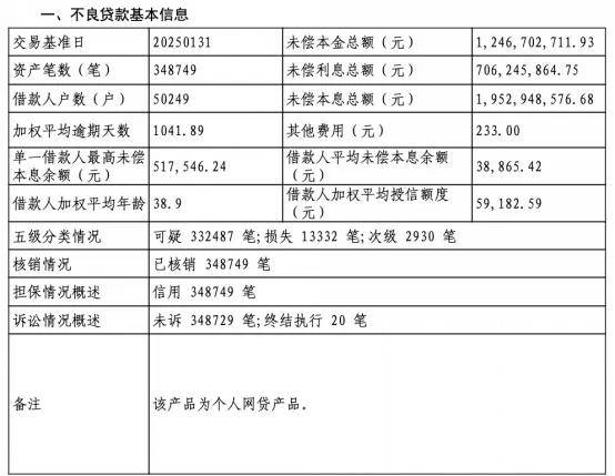 這些不良資產的底層大部分來自網貸平台借款,包括8期個人網貸類消費貸以及1期信用卡透支,涉及約70多萬户借款人。兩輪拍賣連告流拍,也凸顯出處置難度。