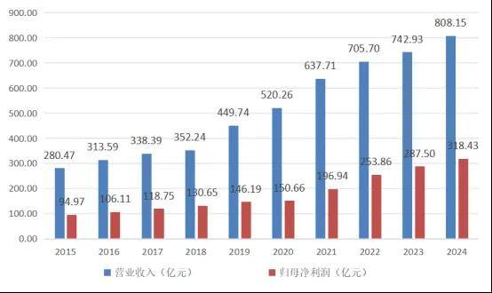 近兩年雖有所放緩,但其2024年營業收入同比增長8.78%,淨利潤同比增長10.97%,跑贏行業平均水平。