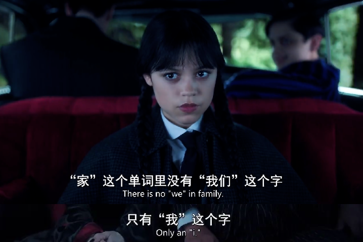 這一角色出自IP《亞當斯一家》,崇尚哥特生活的亞當斯夫婦為女兒取名星期三,靈感來自童謠: