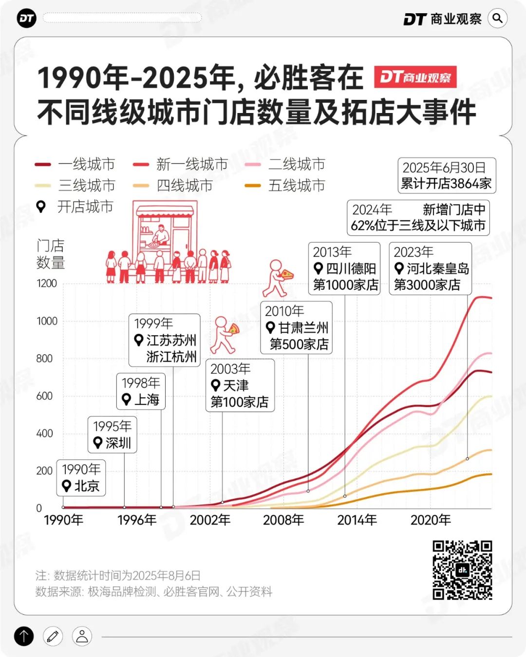 2024年,必勝客的新增門店中,有62%位於三線及以下城市。