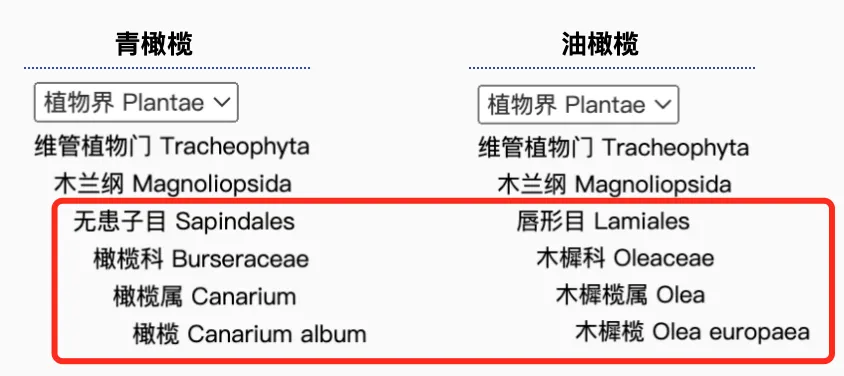 青色果子的“橄欖”,實際上指的是青橄欖(Canarium album),它屬於橄欖科橄欖屬,[1]是南方特有的水果。而橄欖油是來自地中海地區的油橄欖(Olea europaea L.),屬於木犀科木犀欖屬,[2]兩者是完全不同的植物。