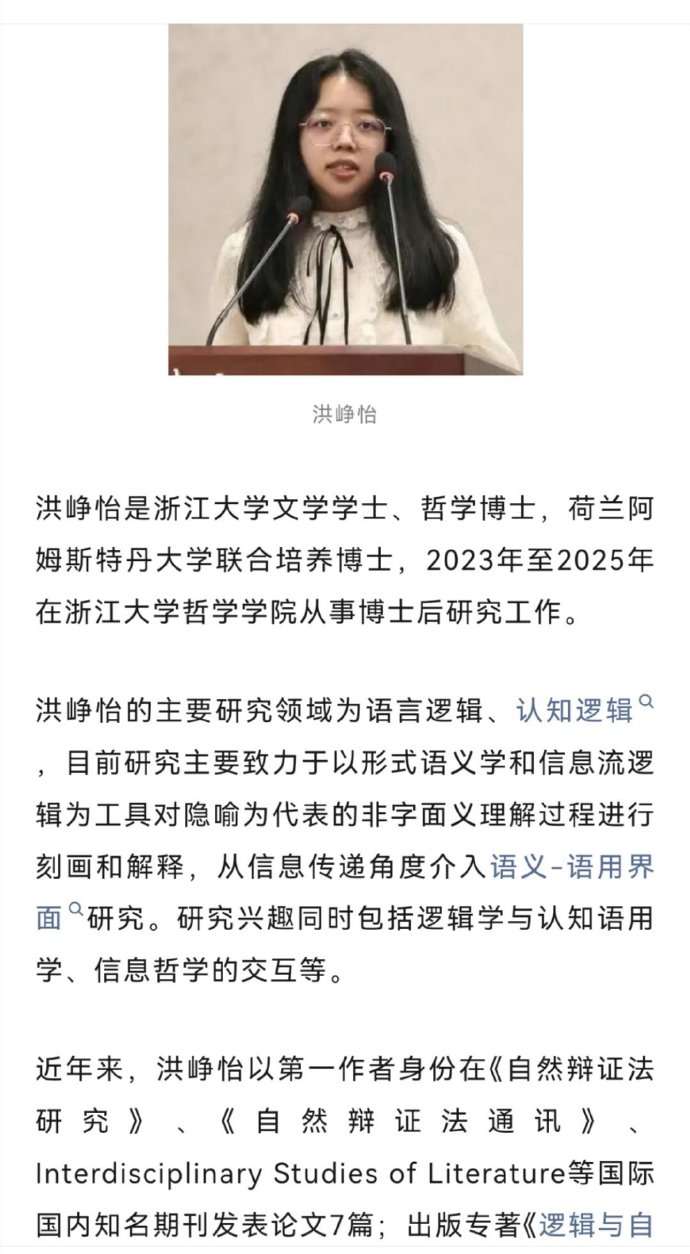 洪崢怡,浙大➕浙大➕浙大(阿姆斯特丹),導師黃華新(浙大人文學院書記➕院長)。公派留學阿姆斯特丹。
