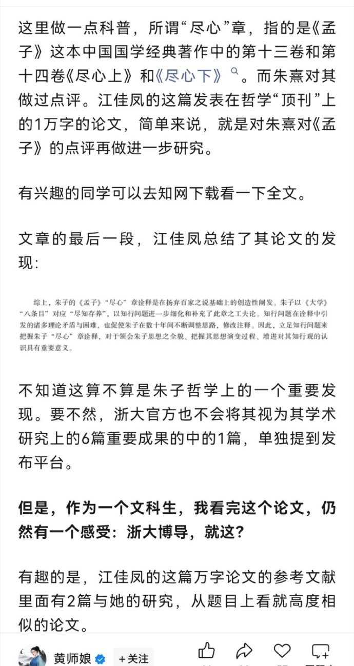 - 博導江佳鳳、郭敬(哲學系):研究領域未詳述,但説了在宋明理學➕梵漢佛典研究中,取得了國際影響力。那麼問題來了,你計劃都11年了,為什麼只有理工科出了明顯的廣而告之的成就,文科的,就