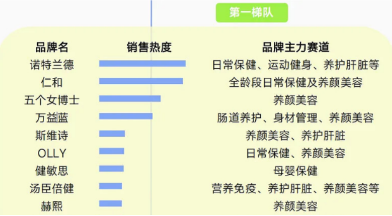 不過,由於此前對傳統線下渠道模式的路徑依賴,湯臣倍健並未真正抓住電商的流量紅利,只能坐視Swisse、“五個女博士”等競爭對手不斷成長。數據顯示,2023年,Swisse拿下淘系平台銷售額第一,市場份額約為6%,比湯臣倍健(3.5%)高出2.5%。在抖音渠道,湯臣倍健銷售熱度不僅遠遠低於“諾特蘭德”、“五個女博士”等品牌,甚至未能進入行業前五名。