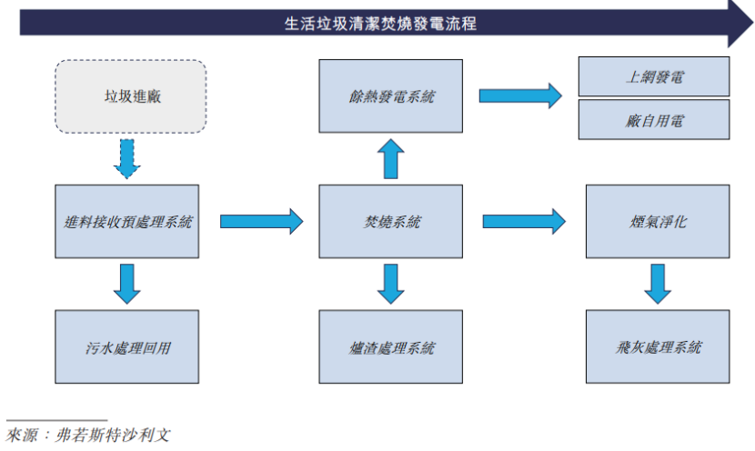 從垃圾焚燒的流程來看,生活垃圾經城市收運系統轉運至焚燒廠,稱重後暫存於垃圾儲坑,滲濾液由底部收集系統送入污水處理系統。