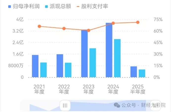 有意思的是,就在甘源食品業績腰斬、存貨貨值居高不下、現金流出現惡化的半年度當口,甘源食品居然還推出了2025年中期分紅方案,擬10股派發5.8元現金,總現金分紅金額約5313萬元,佔當期歸母淨利潤的71.22%。