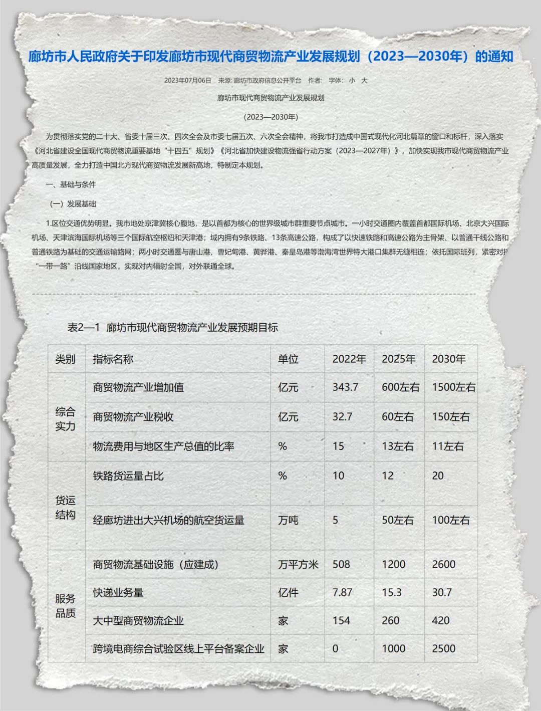 《廊坊市現代商貿物流產業發展規劃(2023—2030年)》