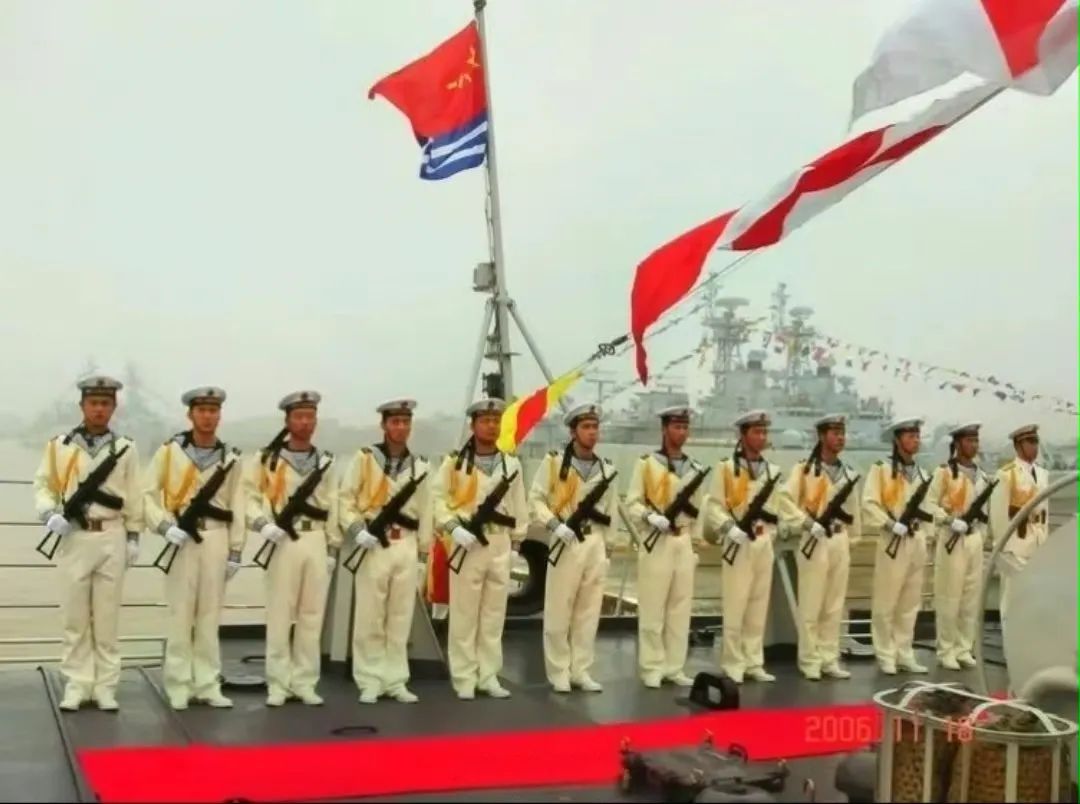 雖然看不清細節,但從照片上,我們可以看到作為背景的戰艦都已經掛滿了彩旗,顯然是在慶祝新艦入列。而照片中這些水兵,想必也是剛剛從俄羅斯接艦歸來的寧波艦官兵。