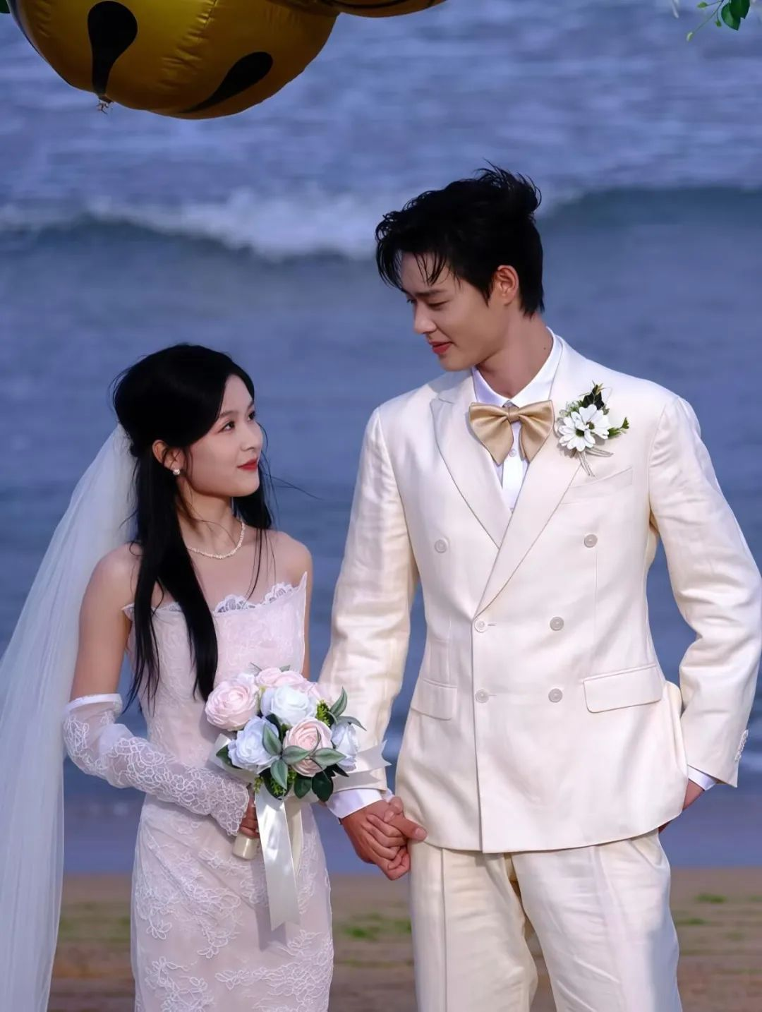 再次,**短劇CP逐漸不滿足於劇內多搭、線上直播等方式,而是通過多種方式釋放影響力。**7月中下旬,《當愛抵達時》熱播,“落日雨輝”現在五城大屏聯動拍照打卡的活動,也在轟轟烈烈展開;《唸唸有詞》的郵輪慶功會,更是將接新娘、噴綵帶、香檳蛋糕禮服等“接親流程”玩了個遍。