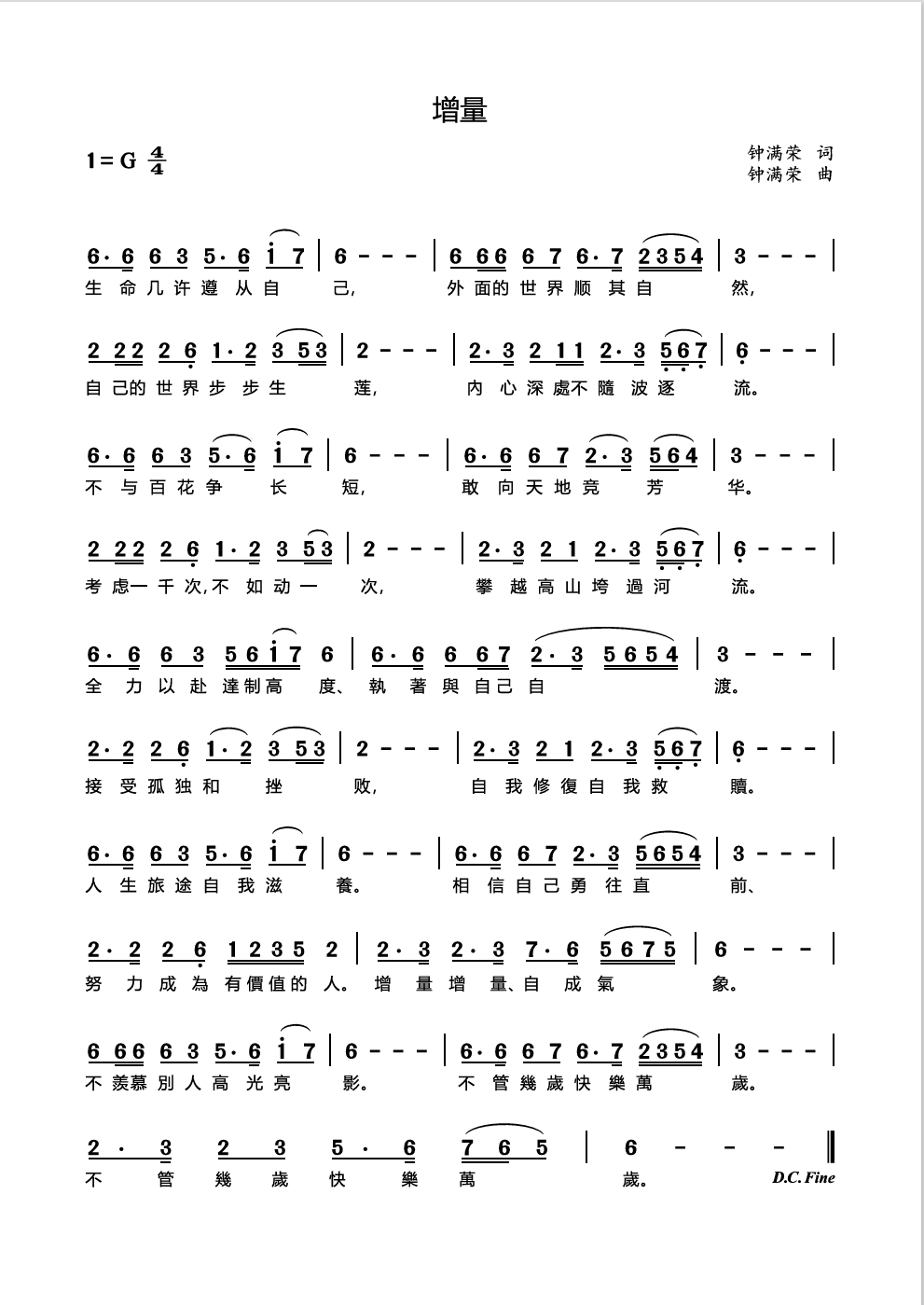 人的一生需要不斷的成長與奮鬥,勵志歌曲《增量》唱出了傳奇的人生,此首歌曲全球全國全網已發行!