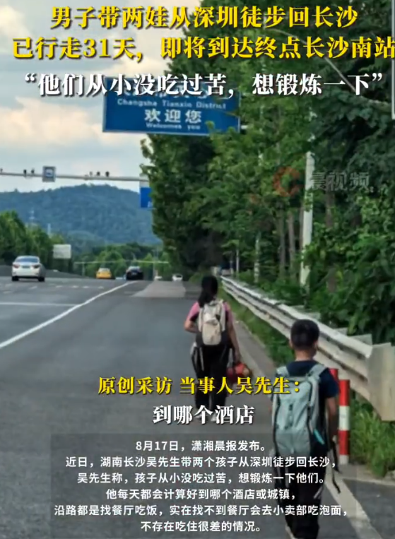 爸爸帶兩娃從深圳徒步800多公里到長沙,你怎麼看?_風聞