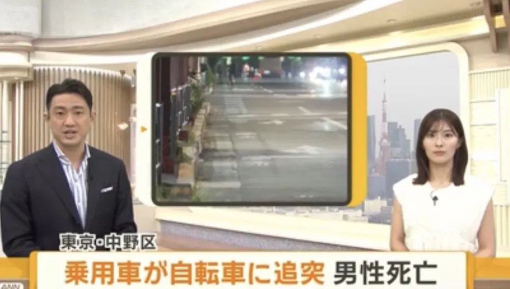 當時,53歲的松本拓也(中野區居民,自營業者)正在騎自行車行駛,結果遭到一輛後方駛來的轎車追尾。