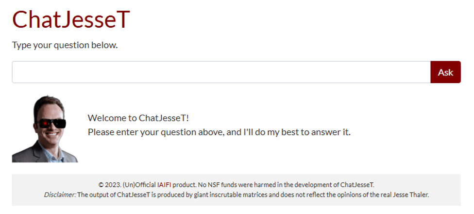 最近,FirstPrinciples(以下簡稱FP)就人工智能與基礎物理學交叉領域的挑戰與機遇,以及IAIFI研究人員正在進行的工作等問題採訪了塞勒(以下簡稱JT)。他分享説,就在不久前,他的學生還不得不説服他“從機器學習的‘老學究’變成機器學習的‘佈道者’”。他甚至開玩笑説,這次採訪的後續問題可以直接向ChatJesseT[3]提出(見下圖),這是他的學生和博士後專為愚人節而創作的ChatGPT搞笑版。